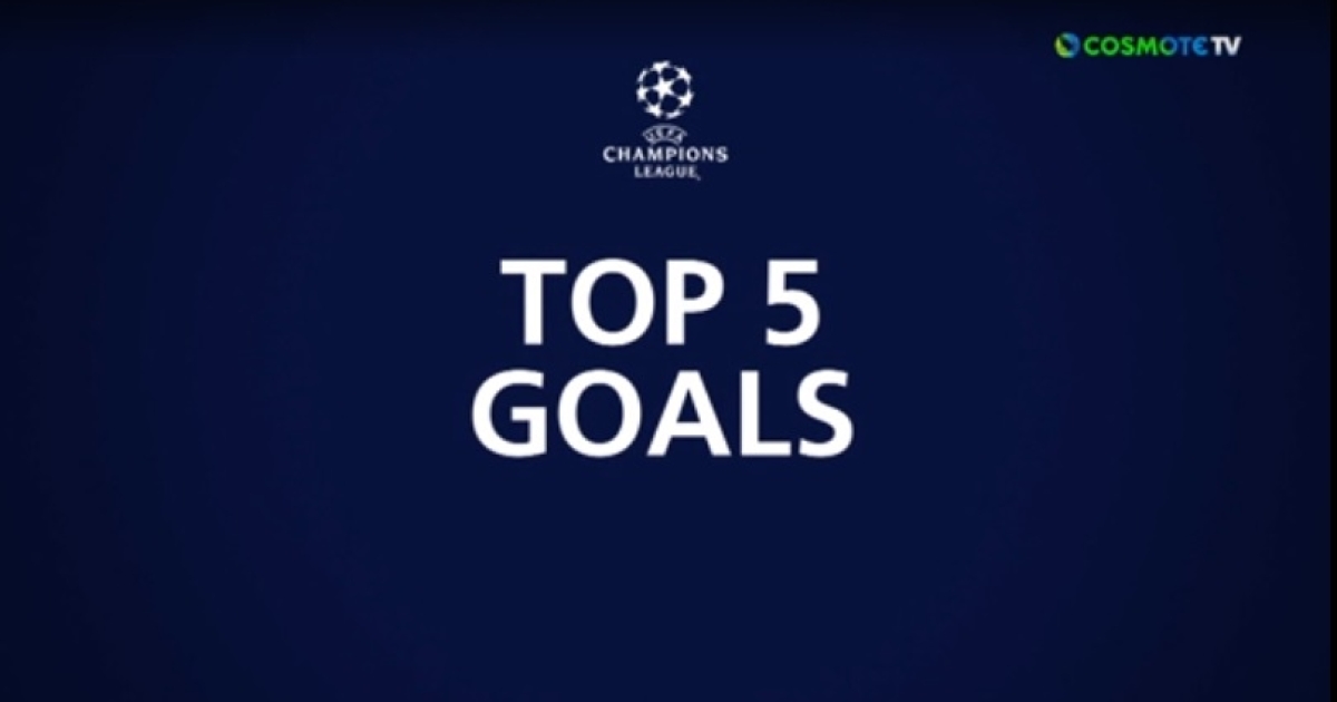 Θεαματικό όπως και τα προηγούμενα είναι και το τελευταίο top-5 της φάσης των ομίλων του Champions League. Στο τελευταίο φετινό top-5 όσον αφορά πάντα τους ομίλους της κορυφαίας αυτής διοργάνωσης, την τιμητική του έχει ο Νεϊμάρ, με τον Βραζιλιάνο της Παρί να είναι στην 1η και 2η θέση. Την πεντάδα συμπληρώνουν οι Τσούπο Μότινγκ (3), Γιανίκ Καράσκο (4) και Φεράν Τόρες (5).