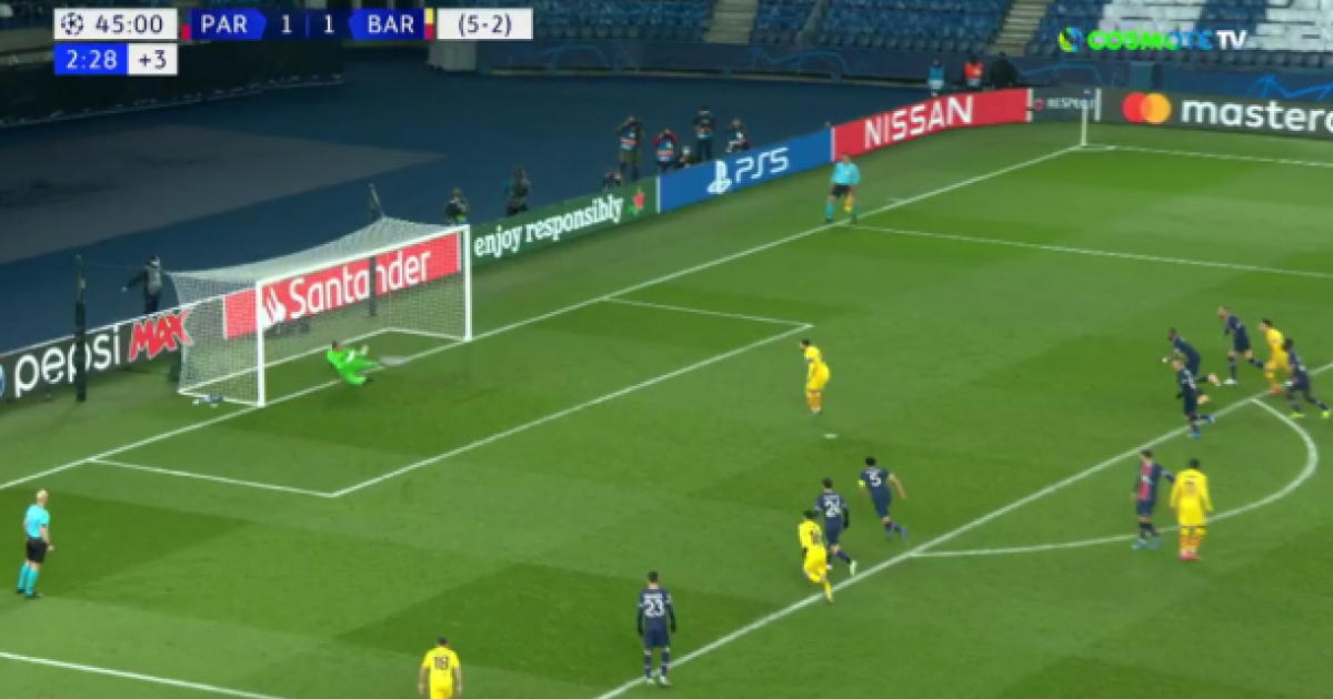 Στη φάση του «κεραυνού» του Λιονέλ Μέσι για το 1-1 έμεινε… άγαλμα. Ωστόσο, ο Κέιλορ Νάβας πήρε εκδίκηση από τον Αργεντινό θρύλο στην εκπνοή του πρώτου μέρους, όταν η Μπαρτσελόνα κέρδισε πέναλτι σε ανατροπή του Γκριεζμάν από τον Κουρζαβά και άγγιξε την ανατροπή για να ξαναμπεί στο παιχνίδι της πρόκρισης.