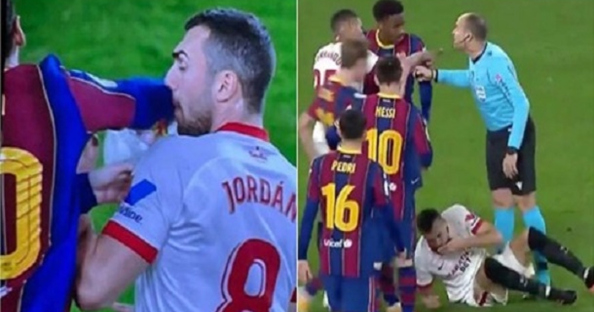 Έχοντας κερδίσει ένα φάουλ που μόνο σκληρό δεν ήταν, ο Μέσι είδε τον Χορδάν να κρατάει τη μπάλα και να μην επιτρέπει την γρήγορη εκτέλεση της στατικής φάσης, με αποτέλεσμα ο Αργεντινός να «μανουριάσει» και να τον πετύχει με τον αγκώνα στο πρόσωπο...
