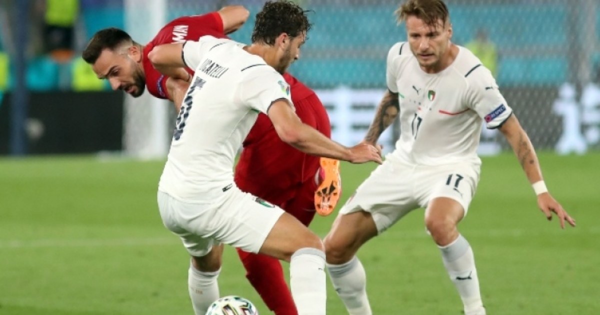Ο Μαντσίνι παρουσίασε μια Ιταλία που πίεζε ασφυκτικά σε όλα τα μήκη και τα πλάτη του γηπέδου. Η Τουρκία ήταν καλά διαβασμένη στην επιλογή του Μαντσίνι να πιέζει έξω από την περιοχή με 3 παίκτες κοντά στην μπάλα και 2 υποστηρικτικά από πίσω και για αυτό τον λόγο στο μεγαλύτερο διάστημα του αγώνα προτίμησε τις μακρινές μεταβιβάσεις στο build up, για να γλιτώσει αυτό ακριβώς που έπαθε στο τρίτο γκολ. Ένα λάθος στο αμυντικό τρίτο που θα έδινε στην Ιταλία την δυνατότητα να απειλήσει με λίγες επαφές.