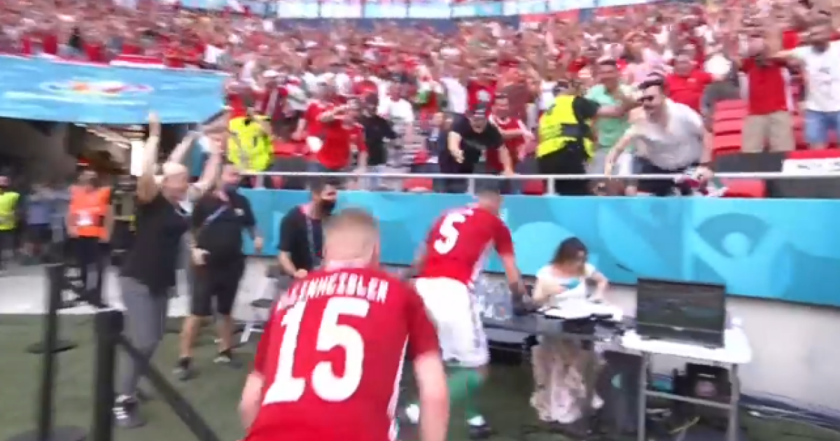 Εκανε την έκπληξη, έβαλε ένα ωραίο γκολ κόντρα στη Γαλλία, πλασάροντας ψύχραιμα τον Γιορίς στην αντεπίθεση. Καλύτερο όμως και από το γκολ του Ατίλα Φιόλα, ήταν ο τρελός πανηγυρισμός του. Ο Ούγγρος μέσος τρελάθηκε που σκόραρε, βγήκε εκτός εαυτού, βρέθηκε εκτός αγωνιστικού χώρου και διέλυσε κάτι λαπτοπ και μικρόφωνα που βρίσκονταν σε ένα stand. Αναμφίβολα ο πανηγυρισμός του Euro 2020 και γλίτωσε για κάποιον λόγο και την κάρτα. Το φοβερό μάλιστα είναι ότι η γυναίκα πίσω από τον πάγκο όχι μόνο δεν τρομάζει, αλλά πανηγυρίζει μαζί του.