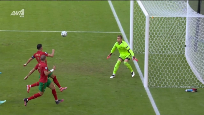 Ο Κριστιάνο Ρονάλντο πρόλαβε και γύρισε την μπάλα, δίνοντας την ασίστ στον Ντιόγκο Ζότα για να μειώσει σε 2-4 για την Πορτογαλία κόντρα στη Γερμανία.