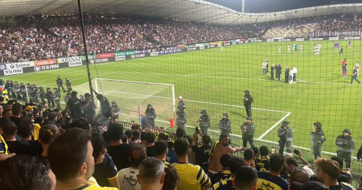 | Maribor - Fenerbahçe maçı, tribünlerde yaşanan olaylar sebebiyle durdu.#MARvFB #Fenerbahçe #UECL pic.twitter.com/yBFpmG0qm0