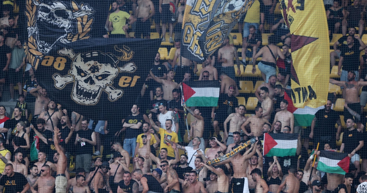 ΑΕΚ - Χάποελ Μπερ Σεβά: Σημαίες και συνθήματα υπέρ της Παλαιστίνης στη Νέα Φιλαδέλφεια