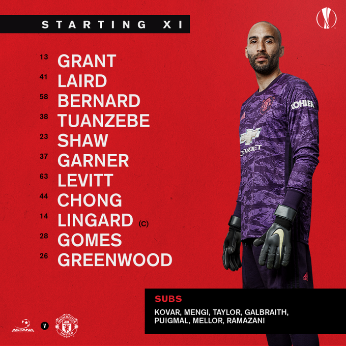 Με τον 36χρονο Λι Γκραντ θα παρουσιαστεί η Γιουνάιτεντ κόντρα στην Αστανά και ο έμπειρος γκολκίπερ έγινε ο γηραιότερος (36 ετών και 305 ημερών) παίκτης που κάνει ντεμπούτο σε ευρωπαϊκή διιοργάνωση για τη Μάντσεστερ. Το... παράδοξο είναι πως ο Γκραντ θα παίξει με συμπαίκτες, όπου ο μέσος όρος ηλικίας των δέκα είναι 20 ετών και 221 ημερών! Ετσι, με τον 36χρονο στο βασικό σχήμα ο μέσος όρος... εκτοξεύεται στα 22 χρόνια και 26 ημέρες. Αλλά ακόμα κι έτσι, αυτή η ενδεκάδα είναι η νεαρότερη της ομάδας σε ευρωπαϊκή διοργάνωση. Από τους δέκα παίκτες, οι τρεις κάνουν ντεμπούτο, οι επτά είναι έφηβοι, ενώ οι εννέα προέρχονται από την Ακαδημία!