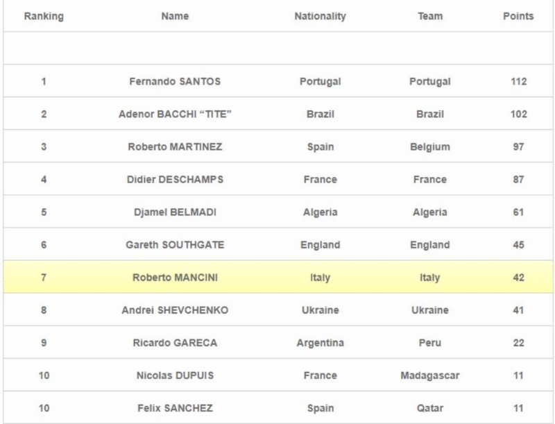 Σημειώνεται, πως για το 2019 ο Σάντος βρέθηκε 10 μονάδες πάνω από τον Τίτε της Βραζιλίας, που κατέκτησε το Κόπα Αμέρικα, ενώ «έπιασε» στις κατακτήσεις τον Γιοακίμ Λεβ, που έχει επίσης δύο πρωτιές. Η πρώτη φορά του πρώην τεχνικού των ΑΕΚ, Παναθηναϊκού και ΠΑΟΚ ήταν το 2016, όταν η χώρα του κατέκτησε το ευρωπαϊκό πρωτάθλημα.