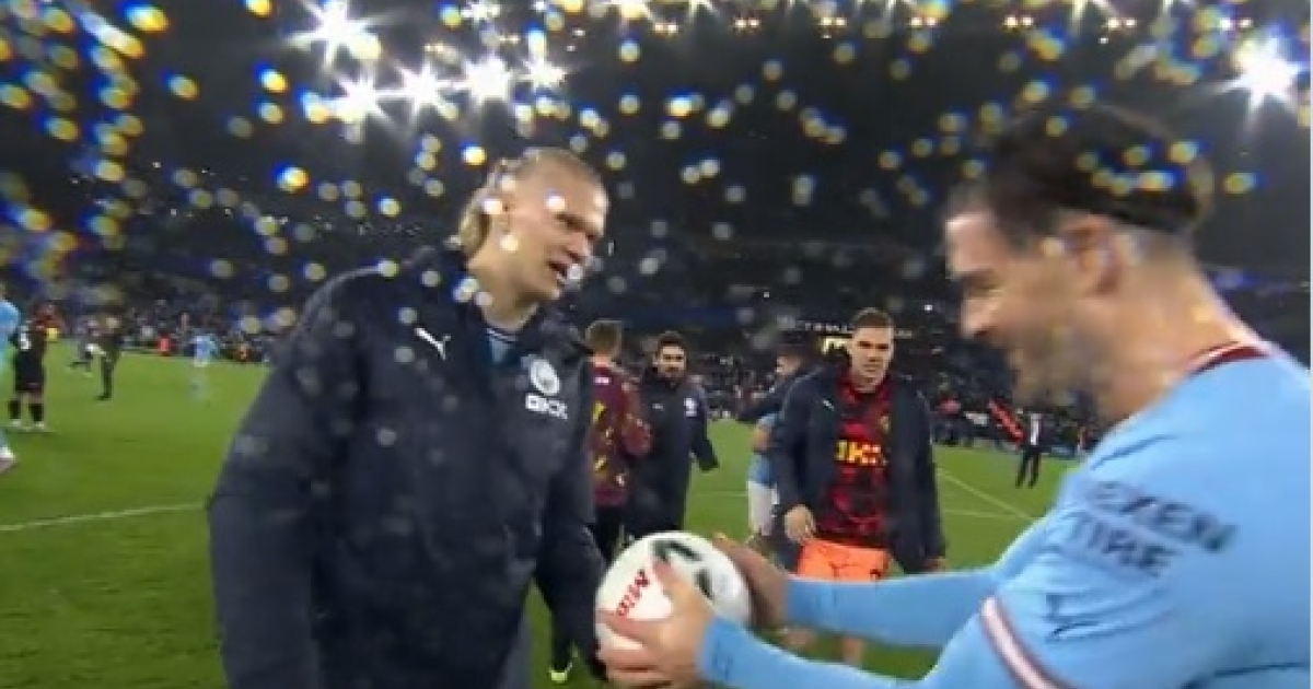 Ωστόσο, αυτό που έκανε τους περισσότερους οπαδούς να μιλούν μετά το παιχνίδι ήταν μια αλληλεπίδραση μεταξύ του Χάαλαντ και του στενού του φίλου Τζακ Γκρίλις. Όπως φαίνεται στο κλιπ που έχει κάνει τον γύρο του διαδικτύου αφού ο ρέφερι δίνει στον Νορβηγό την μπάλα του αγώνα, ο 22χρονος κατευθύνεται προς τον Άγγλο με την μπάλα στο χέρι - και του την δίνει. Το ζευγάρι φαίνεται να γελάει, με τον πρώην παίκτη της Βίλα να μην ξέρει τι να κάνει με το νέο του έπαθλο, πριν τελικά την πετάξει πίσω στον Χάαλαντ.