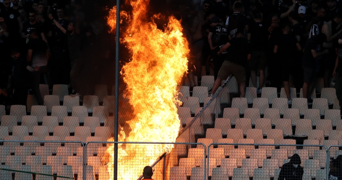 Πριν καν ξεκινήσει το ματς, ξεκίνησε το πανηγύρι με επεισόδια πέριξ του αγωνιστικού χώρου, με εκτοξεύσεις φωτοβολίδων ευθείας βολής, με φωτιές, με όλες γενικά τις ελληνικές ομορφιές. Για να αποκλιμακωθούν όλα τα παραπάνω η Ελληνική Αστυνομία έκανε το σύνηθες. Ρίψη δακρυγόνων. Δεν μπορώ να ξέρω από τον φιλόξενο καναπέ του σπιτιού μου, αν τα δακρυγόνα ήταν ληγμένα ή φρέσκα αλλά μπορώ με ασφάλεια να υποθέσω βλέποντας παίκτες, προπονητές και οπαδούς στις κερκίδες να μην μπορούν να αναπνεύσουν, πως τα δακρυγόνα δεν ήταν το ενδεδειγμένο μέτρο.