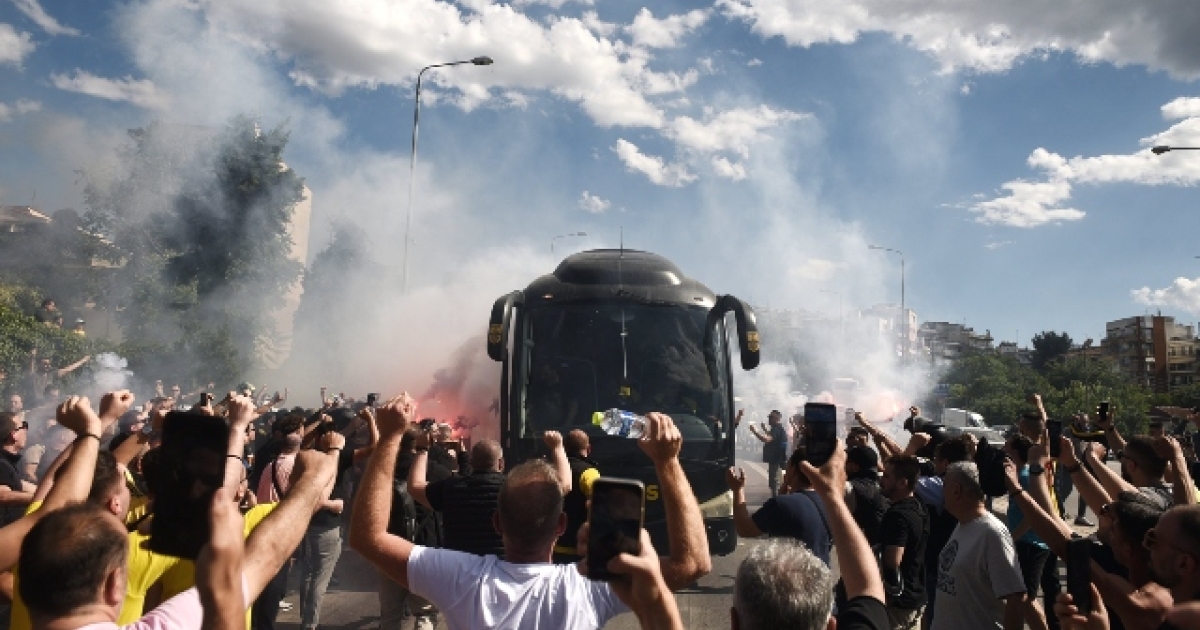 Τότε το ακολούθησαν μέχρι το «Κλεάνθης Βικελίδης» όπου ήταν και άλλος κόσμος συγκεντρωμένος, όμως παράλληλα εκεί υπήρχαν και ισχυρές αστυνομικές δυνάμεις. Οι οποίες και δεν επέτρεψαν στον κόσμο να ακολουθήσει με μηχανοκίνητη πορεία το πούλμαν του συλλόγου, κάτι που προκάλεσε «εστίες» έντασης που πάντως δεν πήραν διαστάσεις.
