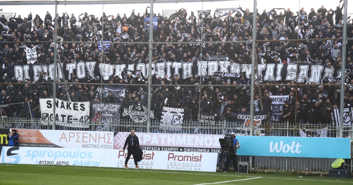 Οι Κρητικοί έδωσαν άλλο χρώμα στην Τρίπολη κατά τη διάρκεια της ημέρας και λίγο πριν αρχίσει το ματς σήκωσαν ένα πανό που έγραφε: «Οι γιοι του Ψηλορείτη έρχονται ξανά».