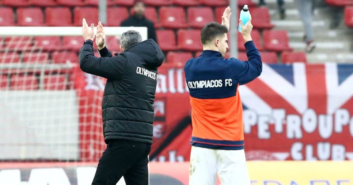 Οι Όσκαρ Γκαρθία και Κέβιν Μιραλάς ευχαρίστησαν με θερμό χειροκρότημα τον κόσμο του Ολυμπιακού μετά τον αγώνα Κυπέλλου με αντίπαλο τον Πλατανιά.