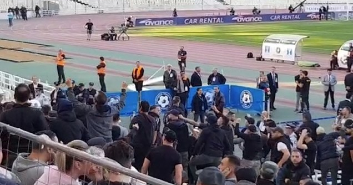 Οπαδοί του ΠΑΟΚ που βρέθηκαν στα επίσημα του ΟΑΚΑ έβρισαν και έφτυσαν δημοσιογράφους, με αποτέλεσμα να μπει στο διαχωριστικό διμοιρία των ΜΑΤ.
