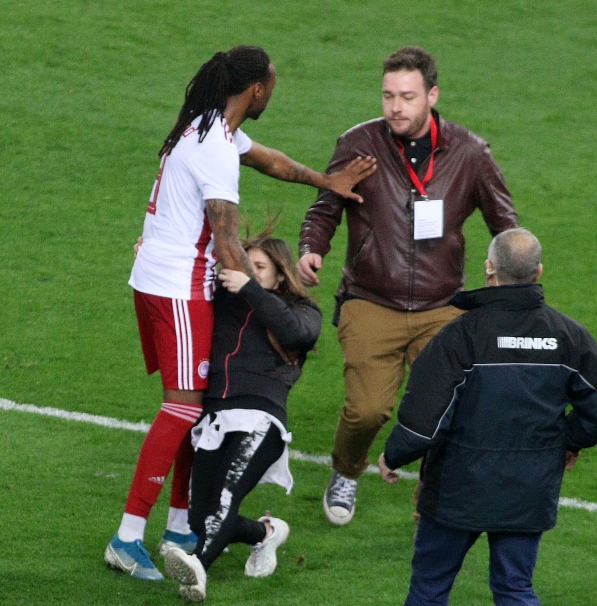 Μία «όμορφη εισβολή» είχαμε σήμερα στο «Γ. Καραϊσκάκης», μετά τη λήξη της αναμέτρησης του Ολυμπιακού με τη Λαμία. Μία νεαρή φίλη των «ερυθρολεύκων» ξέφυγε από τους seciurity και τους άνδρες ασφαλείας και πλησίασε τον Σεμέδο. Ο Πορτογάλος στόπερ μετέφερε με κινήσεις των χεριών του στους τελευταίους πως δεν συντρέχει λόγος ανησυχίας και πήρε την μικρή αγκαλιά, ενώ κάτι ανάλογο έπραξε και ο Φορτούνης.