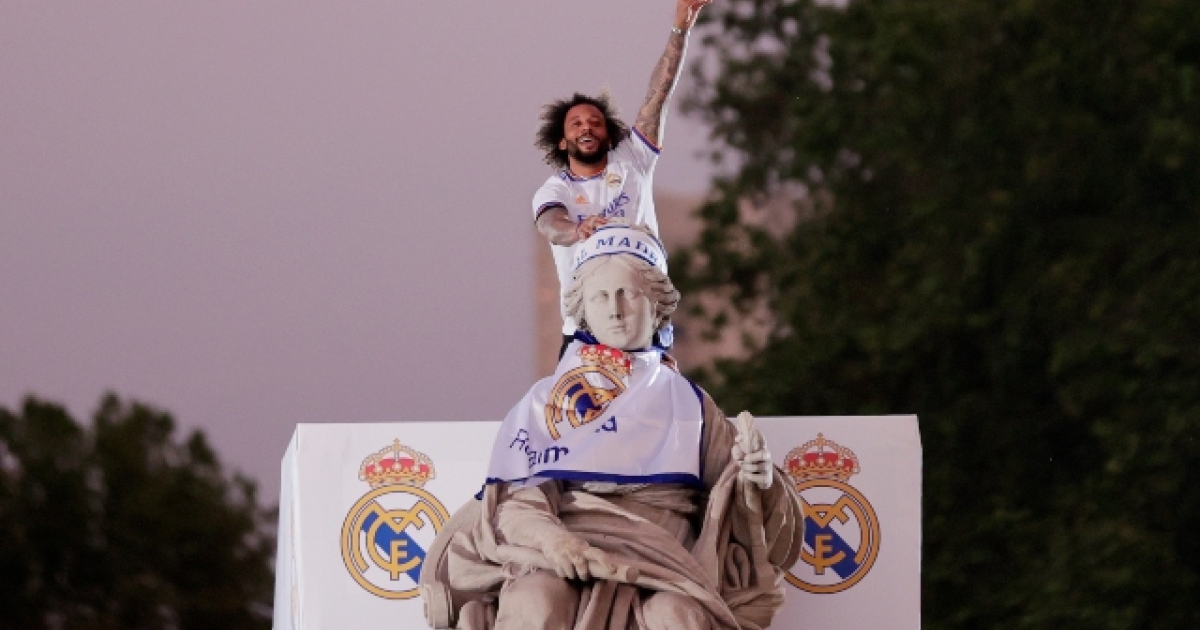 Παρουσία τεράστιου πλήθους που συγκεντρώθηκε τριγύρω, οι Μερένγκες γλέντησαν με την ψυχή τους την κατάκτηση της La Liga, με τον Μαρσέλο να τηρεί την παράδοση και να τυλίγει το άγαλμα με τη σημαία της Βασίλισσας.