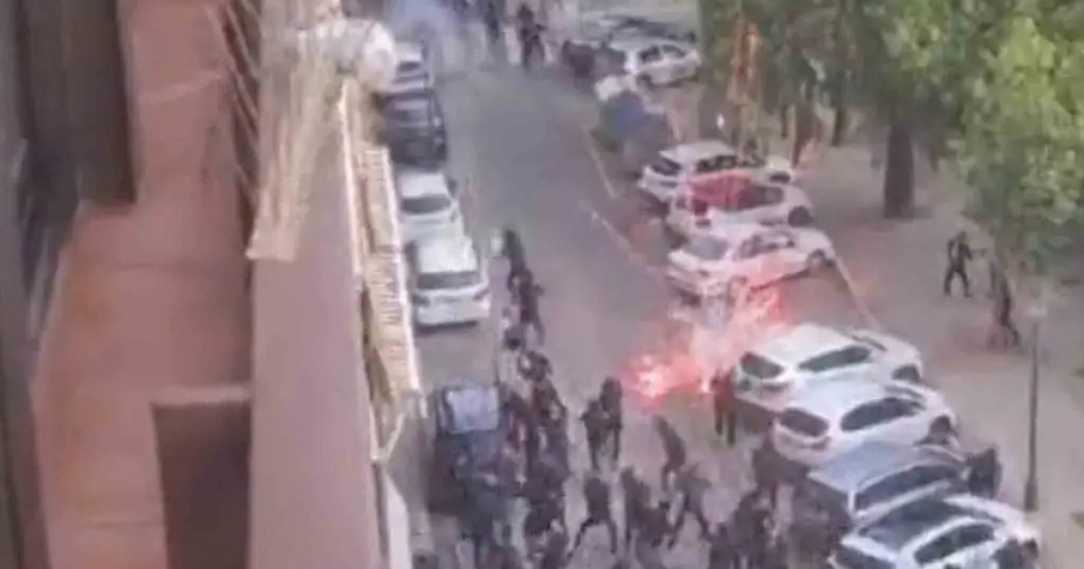 Ένας δρόμος λοιπόν γύρω από το γήπεδο, έγινε το πεδίο συνάντησης των χούλιγκανς των δύο ομάδων και προκλήθηκε βίαια σύγκρουση. Παρατηρείται -σε βίντεο που κάνουν τον γύρο του διαδικτύου- πώς οι ομάδες συναντώνται στο δρόμο, φωνάζοντας πριν από την έναρξη της μάχης, πετώντας μπουκάλια και πέτρες μεταξύ άλλων αντικειμένων.