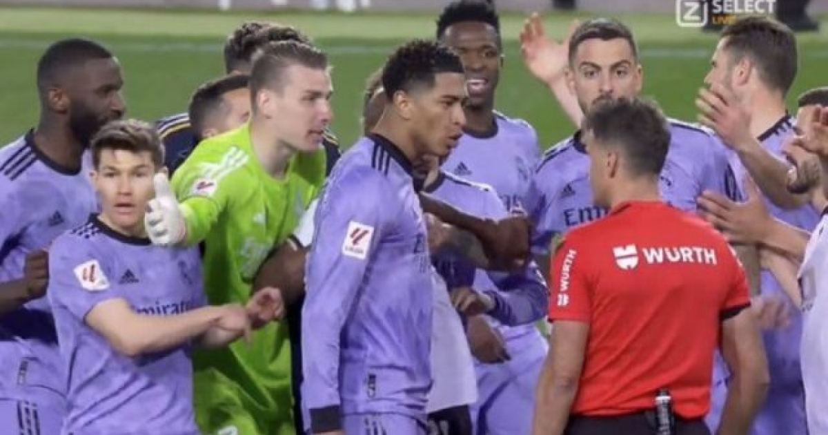 Οι Μερένγκες πίεζαν για το γκολ της νίκης στην τελευταία φάση του ματς, ο Μπραΐμ Ντίαθ βρέθηκε στο πλάι μετά από κόρνερ και σέντραρε, με τον Μπέλινγκχαμ να σκοράρει με το κεφάλι το... buzzer beater και να πιστεύει πως χάρισε τη νίκη στη Ρεάλ. Ο Χιλ Μανθάνο ωστόσο, είχε διαφορετική άποψη, αφού σφύριξε τη λήξη της αναμέτρησης την ώρα που η μπάλα βρισκόταν στον αέρα, με αποτέλεσμα το γκολ του Άγγλου να μη μετρήσει!