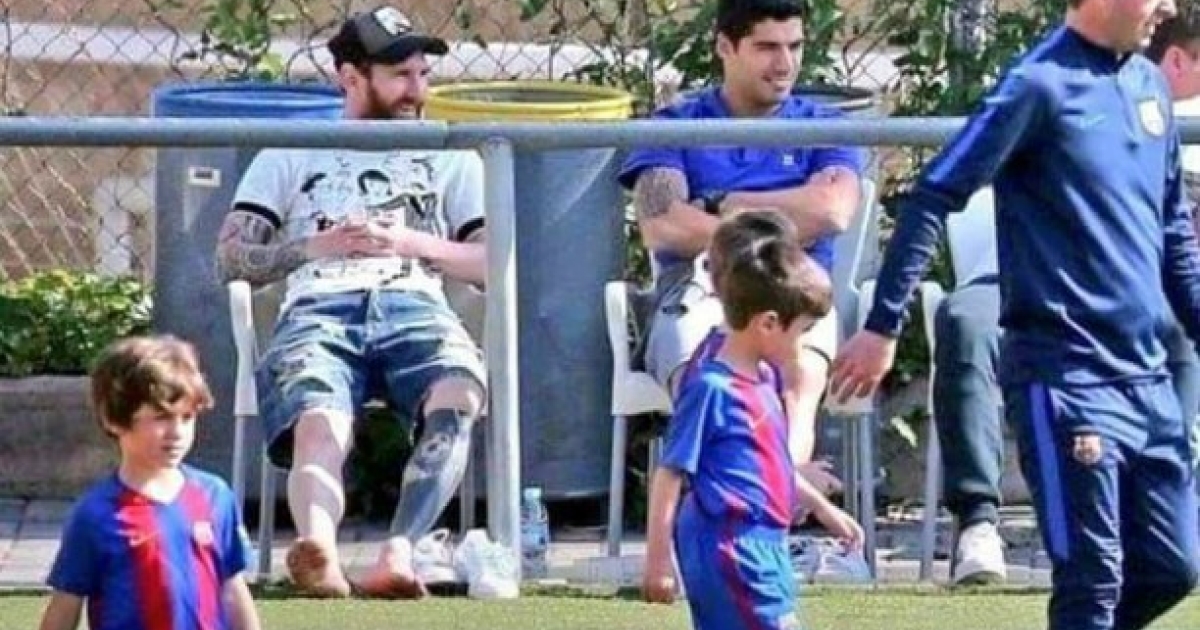 Την τράβηξε ένας απλός τύπος που έχει το παιδί του στο πιο μικρό κλιμάκιο της Μπαρτσελόνα και την ανέβασε στο Twitter, με συνέπεια να γίνει κουβέντα για το θέμα. Οι δύο σούπερ σταρ είναι απολύτως χαλαροί κι ο Μέσι μάλιστα έχει βγάλει και τα παπούτσια του, καθώς αμφότεροι παρακολουθούν τους μεγαλύτερους γιους τους να κάνουν τα πρώτα σοβαρά βήματά τους με το τόπι. Κανείς τους όμως δεν μιλάει, δεν πετάγεται, δεν δίνει οδηγίες.