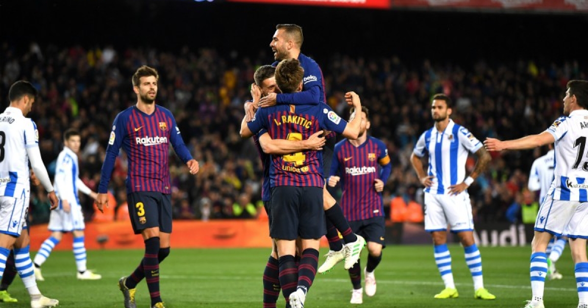 Οι Βάσκοι είχαν την πρώτη καλή και μάλιστα διπλή ευκαιρία με Χουάνμι, Γουίλιαν Ζοσέ (36'), αλλά ο Λενγκλέ με κεφαλιά στο 45' έβαλε το πρώτο δικό του στο πρωτάθλημα και το πρώτο της ομάδας του από κόρνερ στη σεζόν. Στο 62' ο Χουάνμι βγήκε στην πλάτη της άμυνας και με προβολή ισοφάρισε, μα δεν το χάρηκε περισσότερο από δύο λεπτά. Ο Ζόρντι Αλμπα έκανε την κατεβασιά και με το δεξί χάρισε το τρίποντο στους Μπλαουγκράνα. Και αυτή ήταν η 23η διαδοχική νίκη τους (21 στο πρωτάθλημα, 2 στο Κύπελλο) επί της Σοσιεδάδ στο “Καμπ Νόου”.