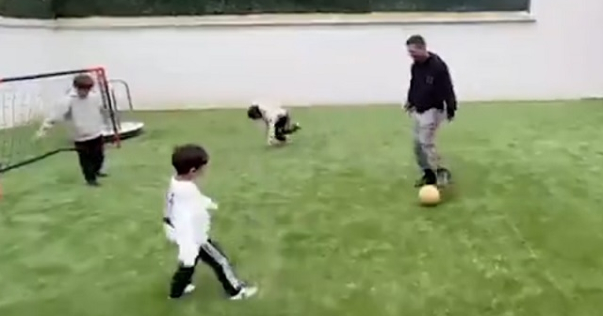 Σε παιχνίδι που έκανε με τα παιδάκια του στον κήπο του σπιτιού του και βοηθώντας τον δικό του συμπαίκτη σε κόντρα δυο εναντίον δυο, σκόραρε και αυτό... εκνεύρισε την Αντονέλα.