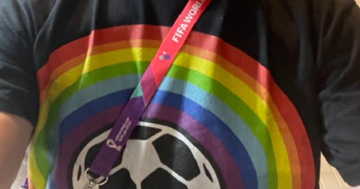 Τα αμφιλεγόμενα σκηνικά που περικλείουν το Μουντιάλ του Κατάρ δεν έχουν σταματημό. Ένας Αμερικάνος δημοσιογράφος, ο Γκράντ Γουάλ, βρέθηκε στο «Αχμάντ Μπιν Αλί» με στόχο να παρακολουθήσει από κοντά την αναμέτρηση των ΗΠΑ απέναντι στην Ουαλία. Παρ'όλα αυτά η μπλούζα που επέλεξε να φορέσει τον... έβαλε σε περιπέτειες. Το μαύρο t-shirt του απεικόνιζε μια μπάλα ποδόσφαίρου περιτυλιγμένη στα χρώματα του ουράνιου τόξου και έστελνε μήνυμα υπέρ της ΛΟΑΤΚΙ+ κοινότητα.