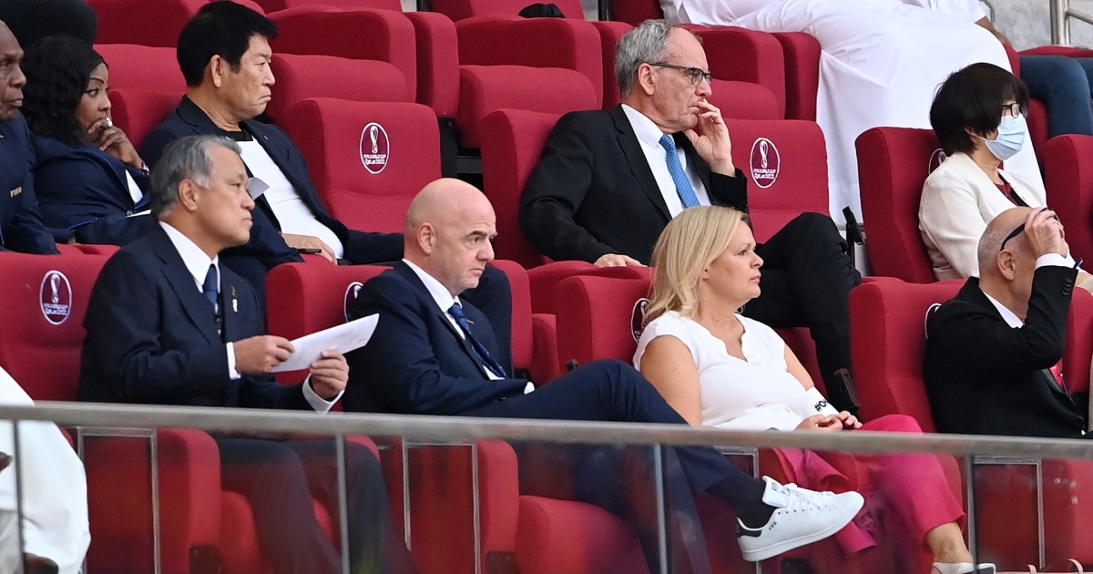 Ο Ιταλός πρόεδρος της Παγκόσμιος Ομοσπονδίας υποδέχθηκε την υπουργό Εσωτερικών της Γερμανίας, η οποία κάθισε δίπλα του. Μετά απ' λίγο έβγαλε το κόκκινο σακάκι που φορούσε και στο αριστερό της χέρι αποκαλύφθηκε ένα περιβραχιόνιο «OneLove», αυτό που πριν λίγες μέρες δεν είχε αφήσει η FIFA τις επτά ευρωπαϊκές ομάδες να το φορέσουν απειλώντας τις χώρες με ποινές αγωνιστικές και μη για τους αρχηγούς τους και τις ίδιες.
