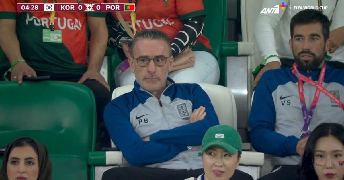 Σε έντονο τόνο τα... είπε ο άλλοτε ερυθρόλευκος ομοσπονδιακός τεχνικός της Κορέας ,Πάουλο Μπέντο με οπαδό στην εξέδρα του «Education City Stadium». Ο κόουτς των Ασιατών, που δεν βρίσκεται στον πάγκο τους λόγω της αποβολής του την προγούμενη αγωνιστική, φάνηκε να ενοχλείται από τον συγκεκριμένο φίλαθλο που του εμπόδιζε το οπτικό πεδίο του αγώνα της ομάδας του απέναντι στην Πορτογαλία.