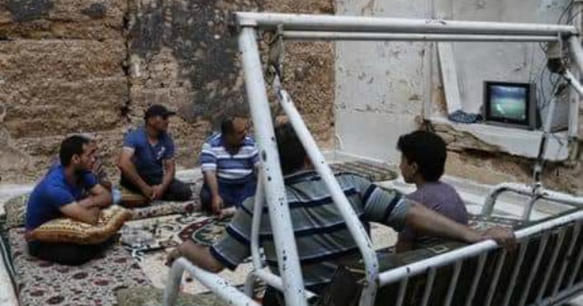 Σε μία από τις πιο συγκλονιστικές απεικονίσεις του Παγκοσμίου Κυπέλλου, μία παρέα ανδρών ξεχνάει για λίγο τον πόλεμο και βλέπει το Γαλλία-Κροατία σε ένα βομβαρδισμένο σπίτι στη Χομς.
