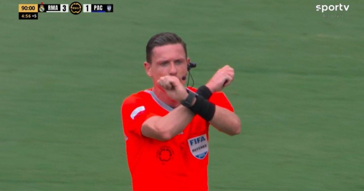 Ramon Abatti acabou de fazer o gesto em Real Madrid x Pachuca, vai detalhar na súmula o ocorrido. pic.twitter.com/wmscq8u1me
