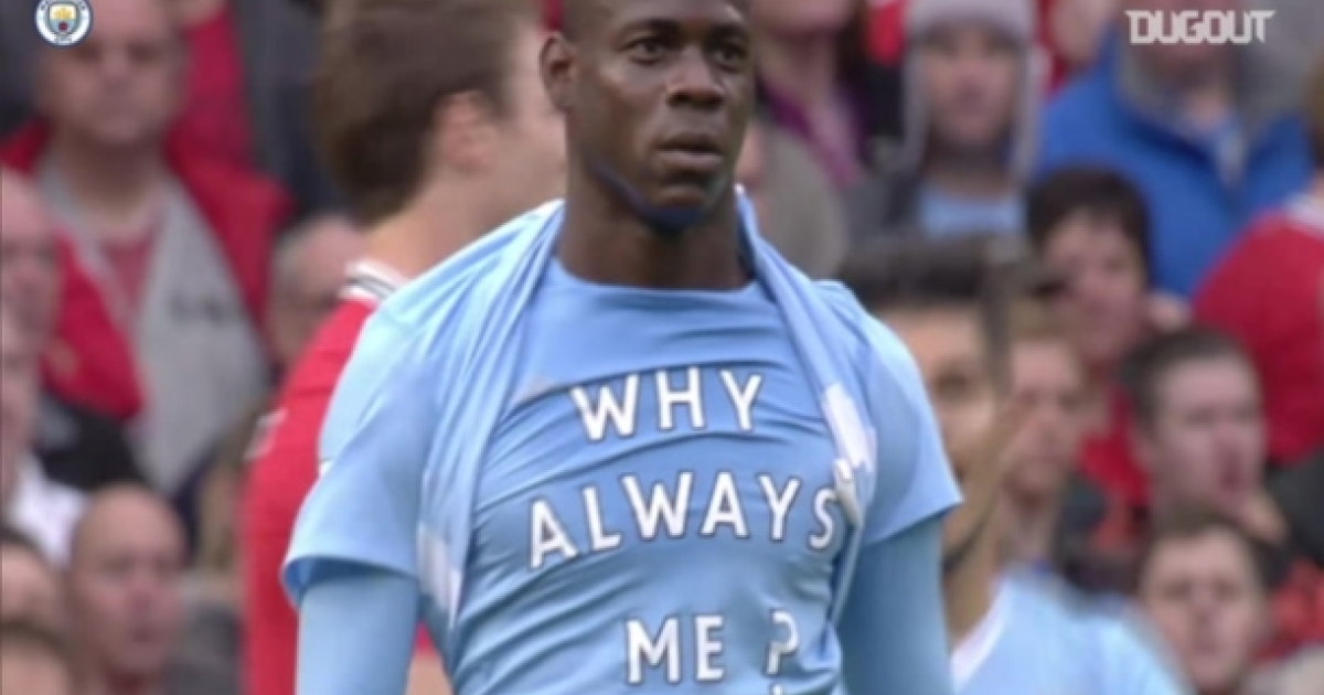 Ο Ιταλός φορ, όσο αποτελούσε παίκτη των Πολιτών, είχε φροντίσει να συνδέσει το όνομα του με αξιοπερίεργα συμβάντα, cult αντιδράσεις, εντός κι εκτός γηπέδου. Η πιο ιδιαίτερη από αυτές, αναμφίβολα έλαβε χώρα στο ντέρμπι του Μάντσεστερ τον Οκτώβρη του 2011 και το εμφατικό 1-6 του Ολντ Τράφορντ. Ο «Σούπερ Μάριο», μετά το γκολ με το οποίο άνοιξε το σκορ, έδειξε ένα t-shirt που φορούσε κάτω από την φανέλα του, με το οποίο αναρωτιώταν... γιατί να σκοράρει πάντα αυτός, κερδίζοντας μια θέση στο «πάνθεον» των κορυφαίων πανηγυρισμών τα τελευταία χρόνια και αποδεικνύοντας έμπρακτα τον εκκεντρικό του χαρακτήρα.