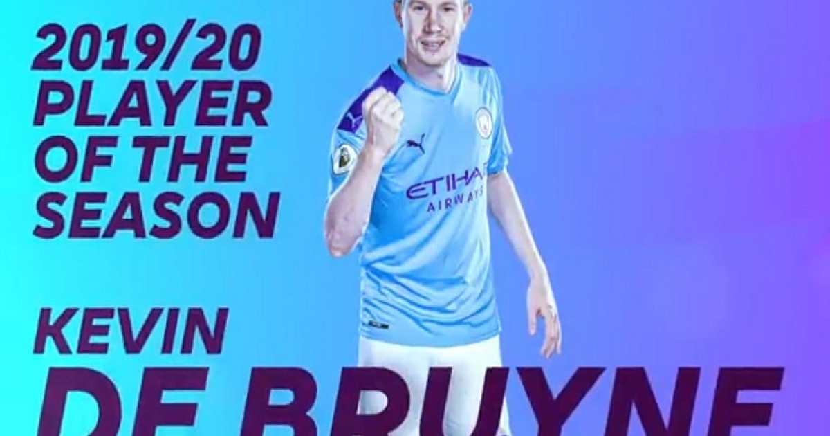 Έπειτα από 13 τέρματα, 20 ασίστ – ισοφάριση του ρεκόρ του Τιερί Ανρί για τα «σερβιρίσματα» σε μια σεζόν – και το σύνολο της συμβολής σε 33 τέρματα σε 35 συμμετοχές, ο KdB της Μάντσεστερ Σίτι κατέκτησε το βραβείο του κορυφαίου του πρωταθλήματος που ολοκληρώθηκε στα τέλη του Ιούλη, με τη Λίβερπουλ να παίρνει τον τίτλο για πρώτη φορά έπειτα από 30 χρόνια.