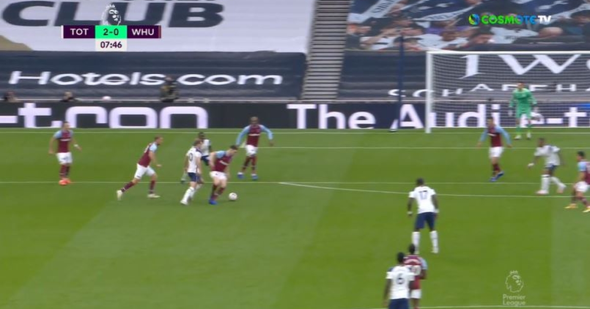 Η κλάση του Χάρι Κέιν φάνηκε σε όλο της το μεγαλείο, με τον Άγγλο στράικερ να αδειάζει με «άρρωστη» ποδιά τον αμυντικό και να εκτελεί για το 2-0 της Τότεναμ στο 8', μετά από ασίστ του Σον.