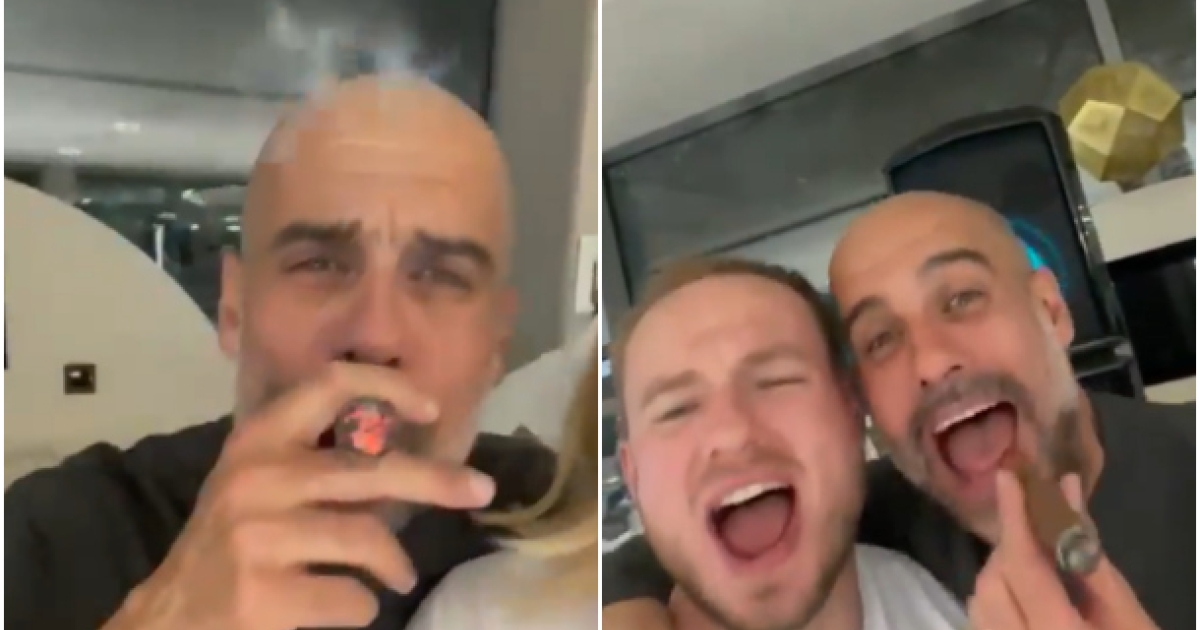 Παρέα με τους φίλους των Σίτιζενς, ο Πεπ καπνίζει το πούρο του και τραγουδάει εκστασιασμένος το «Don’t Look Back In Anger» των Oasis, μπάντας σήμα-κατατεθέν της γαλάζιας πλευράς του Μάντσεστερ, σε ένα από τα βίντεο της χρονιάς!