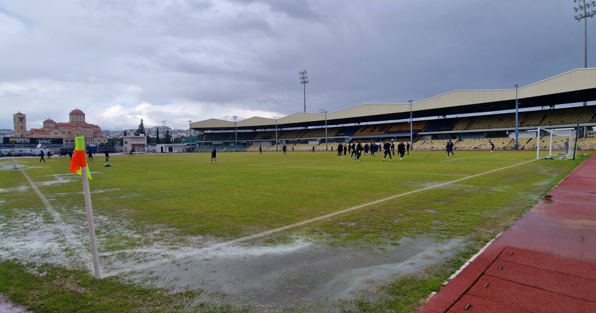 Αιτία, η κατάσταση στην οποία βρισκόταν ο αγωνιστικός χώρος μετά την έντονη βροχόπτωση που παρατηρήθηκε στην περιοχή.