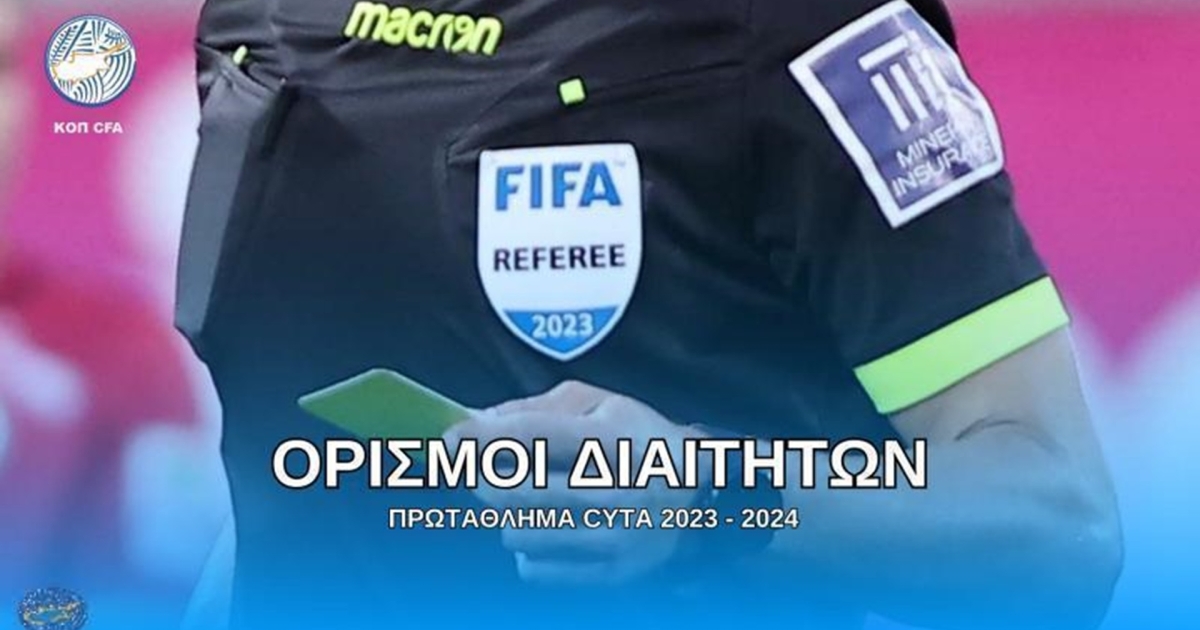 «Η Κυπριακή Ομοσπονδία Ποδοσφαίρου ανακοινώνει τους διαιτητές, βοηθούς διαιτητές και παρατηρητές διαιτησίας των αγώνων της 10ης & 14ης αγωνιστικής της Β’ Φάσης του Πρωταθλήματος Cyta».