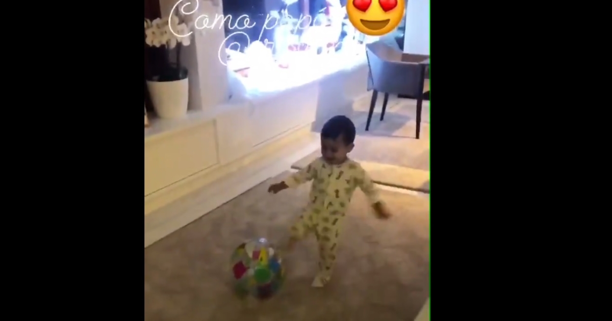 Ο μπόμπιρας, παίζει στο σπίτι του Πορτογάλου σούπερ σταρ, δείχνει να το χαίρεται πολύ και η Τζορτζίνα Ροντρίγκες δεν χάνει την ευκαιρία ν' αποτυπώσει σε βίντεο τις πρώτες προσπάθειες του παιδιού της, ώστε να μπορεί να τον δει και ο περήφανος μπαμπάς, Κριστιάνο.