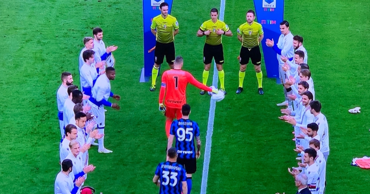 Η ομάδα του Αντόνιο Κόντε, την προηγούμενη εβδομάδα, αναδείχθηκε και μαθητικά πρωταθλήτρια. Από την πλευρά της η Σαμπντόρια μπορεί να γνώρισε την ήττα με 5-1 από τους «νερατζούρι», ωστόσο πριν τη σέντρα έδειξε το σεβασμό της στους φετινούς πρωταθλητές.