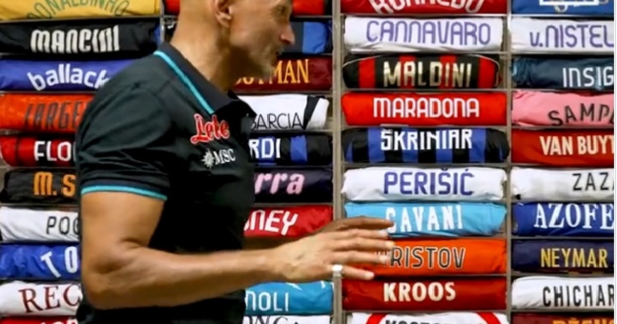 O head coach της Νάπολι, παρουσίασε την πλούσια συλλογή του με εμφανίσεις παικτών στην οποία δεσπόζουν φανέλες ιερών τοτέμ της μπάλας, όπως ο Μαραντόνα και ο Ρονάλντο, παικτών - θρύλων όπως ο Μπατιστούτα, ο Τότι, ο Ρομπίνιο, ο Βιέρι, ο Λούκα Τόνι.