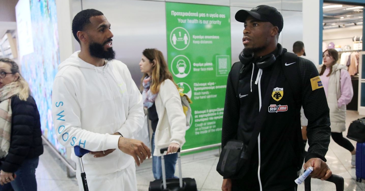 Κατά την αναχώρηση της αποστολής μάλιστα βρισκόταν εκεί και ο Γιαν Εμβιλά του Ολυμπιακού, ο οποίος είναι τραυματίας αυτή την περίοδο και περπατάει με πατερίτσα.