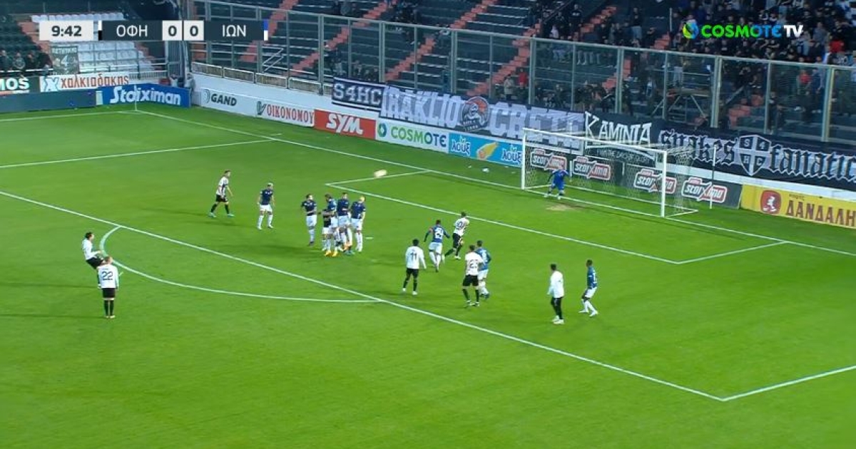 ΟΦΗ - Ιωνικός: Στο δοκάρι η εκπληκτική εκτέλεση φάουλ του Μπάκιτς (vid)