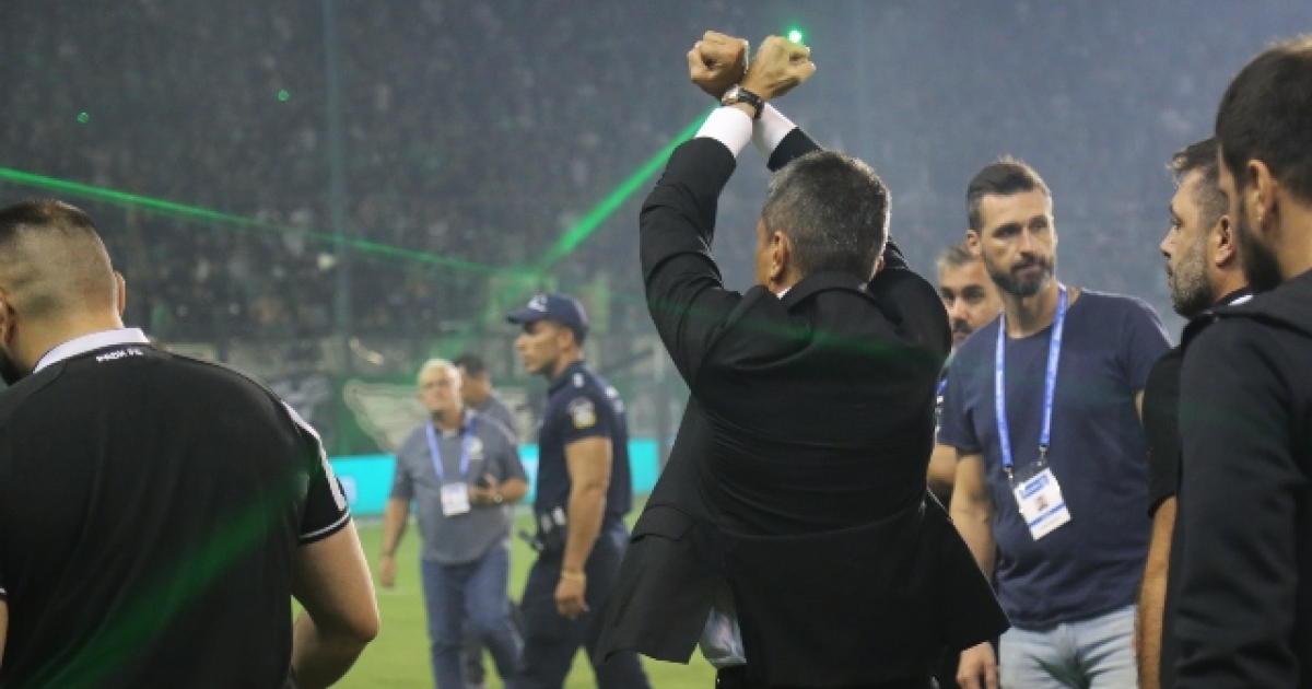 Μάλιστα ο κόουτς του «Δικέφαλου» αμέσως μόλις έληξε ο αγώνας σήκωσε ψηλά τα χέρια του σα να ήταν «δεμένα», θέλοντας με αυτόν τον τρόπο να διαμαρτυρηθεί για τις αποφάσεις του διαιτητή Τιάγκο Μαρτίνς.