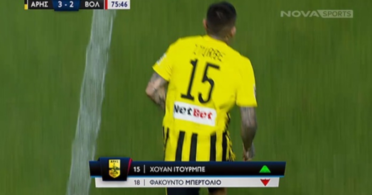 Οι προετοιμασίες για την είσοδο του Παραγουανού στη φιλική αναμέτρηση του Άρη με τον Βόλο στο «Κλ. Βικελίδης» συνοδεύτηκαν από ζεστό χειροκρότημα αλλά και επιφωνήματα αποθέωσης προς το πρόσωπό του. Αυτή η εικόνα σχηματίστηκε στο 76ο λεπτό όταν ο Χουάν Ιτούρμπε στάθηκε στο κέντρο του γηπέδου και πέρασε στο παιχνίδι για τα πρώτα (τουλάχιστον) 14 λεπτά συμμετοχής με την «κιτρινόμαυρη» φανέλα.