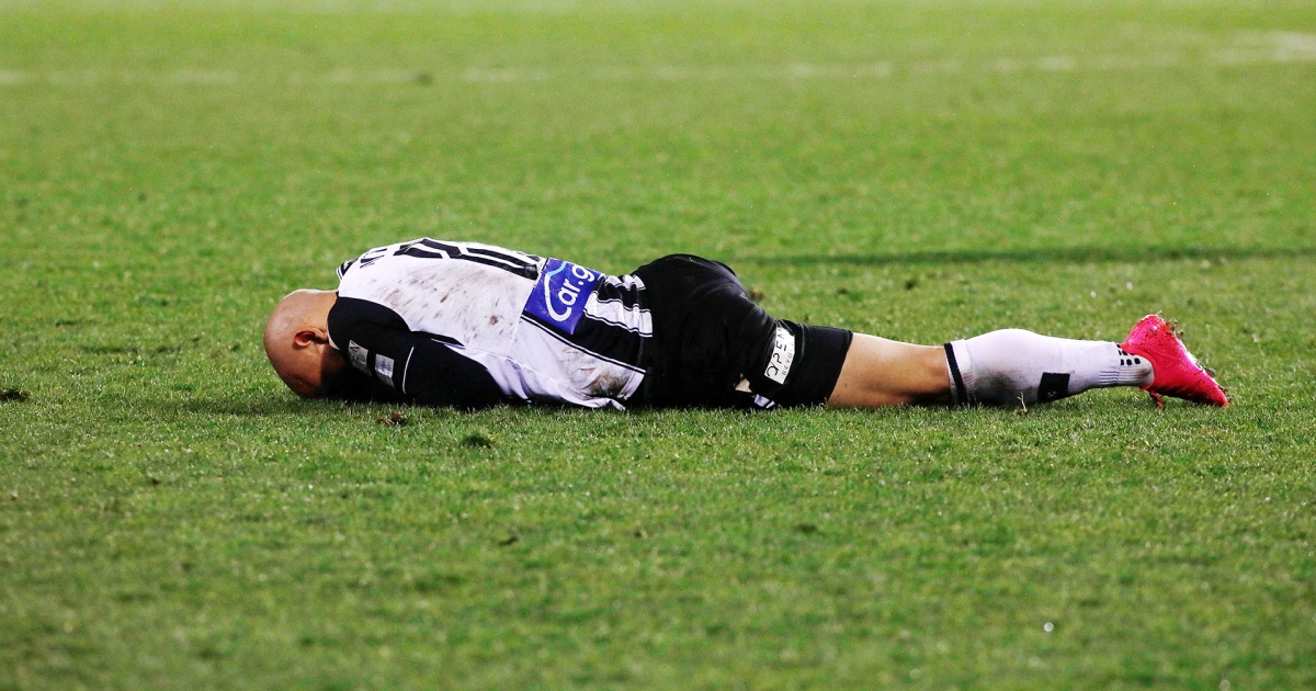 Ο Μιτρίτσα υποβασταζόμενος από το γιατρό του «Δικεφάλου», Γιάννη Ράλλη, έπιανε το πόδι του στο ύψος του μηρού πριν επιστρέψει με εμφανές το πρόβλημα στο παιχνίδι.