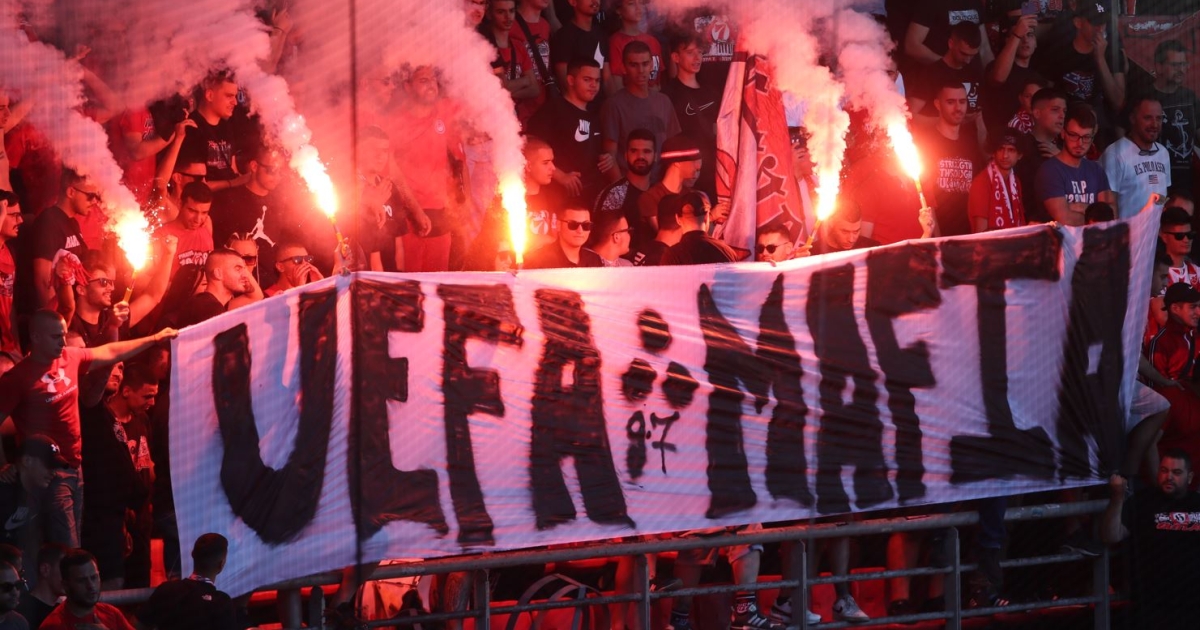 Έτσι, οι φίλοι του Ολυμπιακού, στο εντός έδρας ματς με τον Ατρόμητο σήκωσαν ένα πανό που έγραφε «UEFA MAFIA».