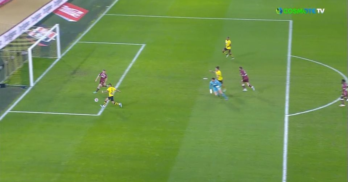 Μια ανάσα από το 1-0 βρέθηκε στο 20' η ΑΕΚ στο ματς με τον Άρη, με τον Μπράμπετς να σταματάει εξαιρετικά τον Πινέδα, αφού πρώτα ο Κουέστα νίκησε τον Τσούμπερ.