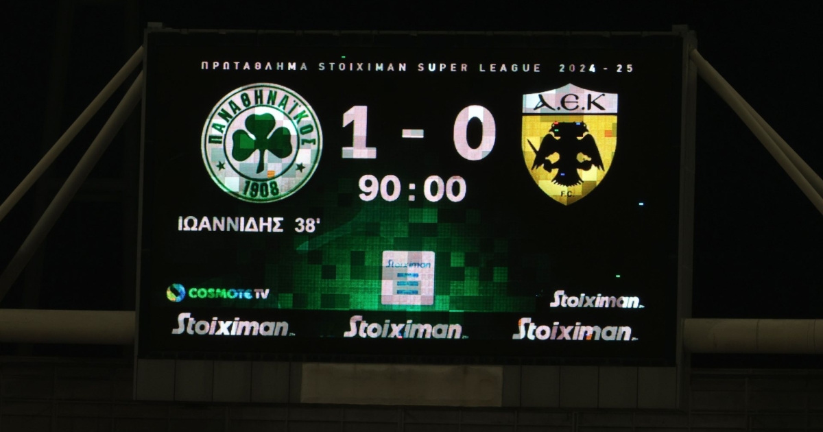 Ο Παναθηναϊκός νίκησε 1-0 την ΑΕΚ στο ντέρμπι του ΟΑΚΑ, χάρις σε εύστοχη εκτέλεση πέναλτι του Ιωαννίδη στο 38’.