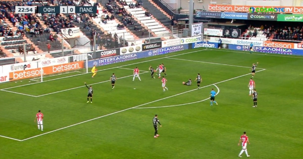 Στο 23' ο Χέφτε Μπετανκόρ βρέθηκε να κάνει το 1-1 για τον Πανσερραϊκό. Ο Ισπανός επιθετικός έγινε κάτοχος της μπάλας, την πέρασε από πάνω από τον αντίπαλό του με εξαιρετική ενέργεια και μετά με ένα σούπερ τελείωμα σκόραρε και έφτασε τα 14 γκολ στη Stoiximan Super League 1. Οι παίκτες του ΟΦΗ διαμαρτυρήθηκαν για φάουλ του Μπετανκόρ, υπήρξε VAR Check και εν τέλει το γκολ μέτρησε.