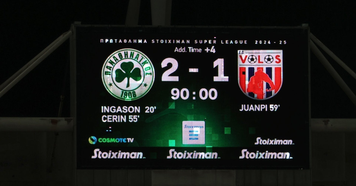 Ο Παναθηναϊκός επικράτησε 2-1 του Βόλου χάρις σε τέρματα που σημείωσαν οι Ινγκασον, Τσέριν. Για τους φιλοξενούμενους μείωσε ο Χουάνπι.