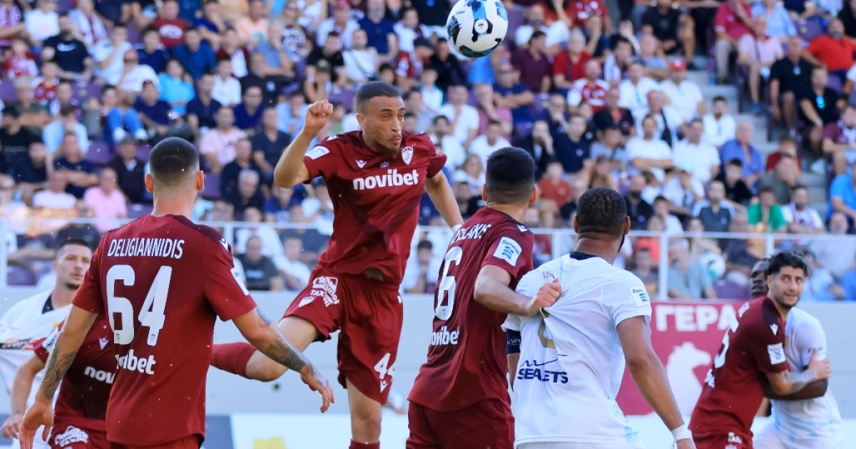 Στο ύψος του: Ο Ατανάσοφ από πλευράς ΑΕΛ Novibet ήταν πολύ καλός, ενώ κάθε στατικό του ήταν «φαρμάκι». Από το δικό του κόρνερ ήρθε και η ισοφάριση για τους βυσσινί.