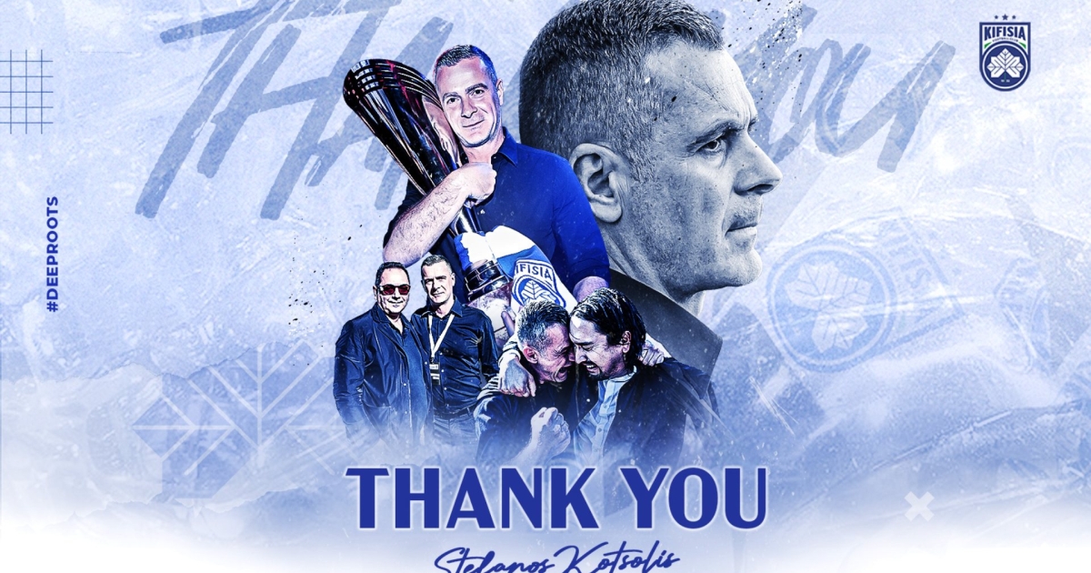 «Η ΠΑΕ Κηφισιά με μεγάλη συγκίνηση ανακοινώνει την ολοκλήρωση της συνεργασίας της με τον Στέφανο Κοτσόλη, τον άνθρωπο που υπηρέτησε την ομάδα μας επί εξαετίας με αφοσίωση, εργατικότητα και επαγγελματισμό.