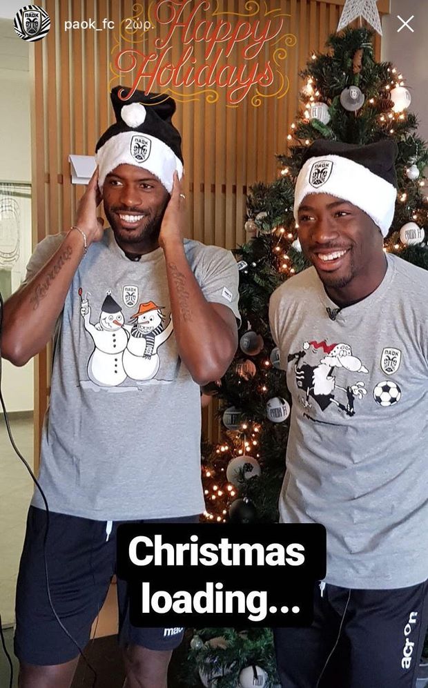 Ο Βαρέλα και ο Κάμπος, με σαφή εορταστική διάθεση, κάθισαν μπροστά στο ασπρόμαυρο δένδρο της ΠΑΕ ΠΑΟΚ και έστειλαν μαζί και με άλλους συμπαίκτες τους ευχές ενόψει των Χριστουγέννων.